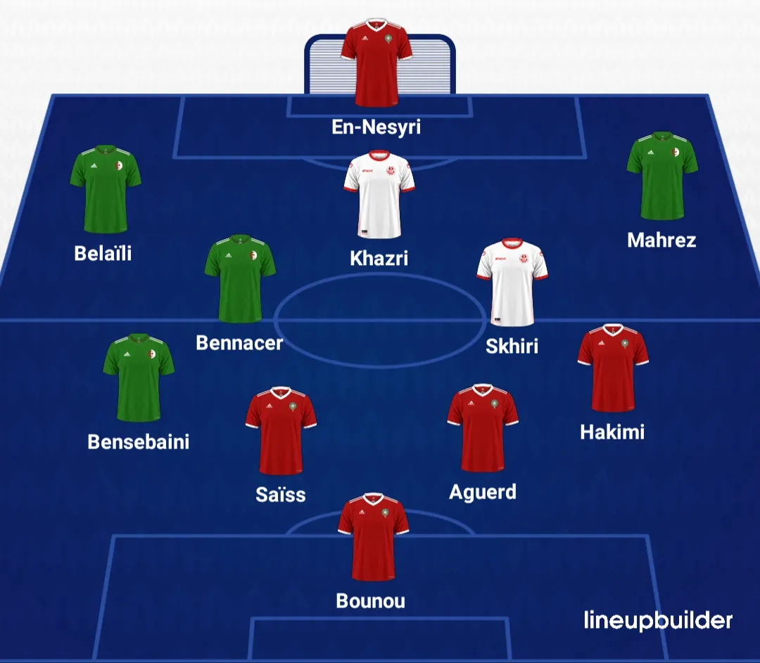 A quelques jours du début de la coupe d’Afrique des Nations qui aura lieu au Cameroun, du 9 janvier au 6 février. Le journal de l’équipe et son journaliste nous ont proposé l’équipe type de l’année du Maghreb, avec un système de jeu en 4-2-3-1.