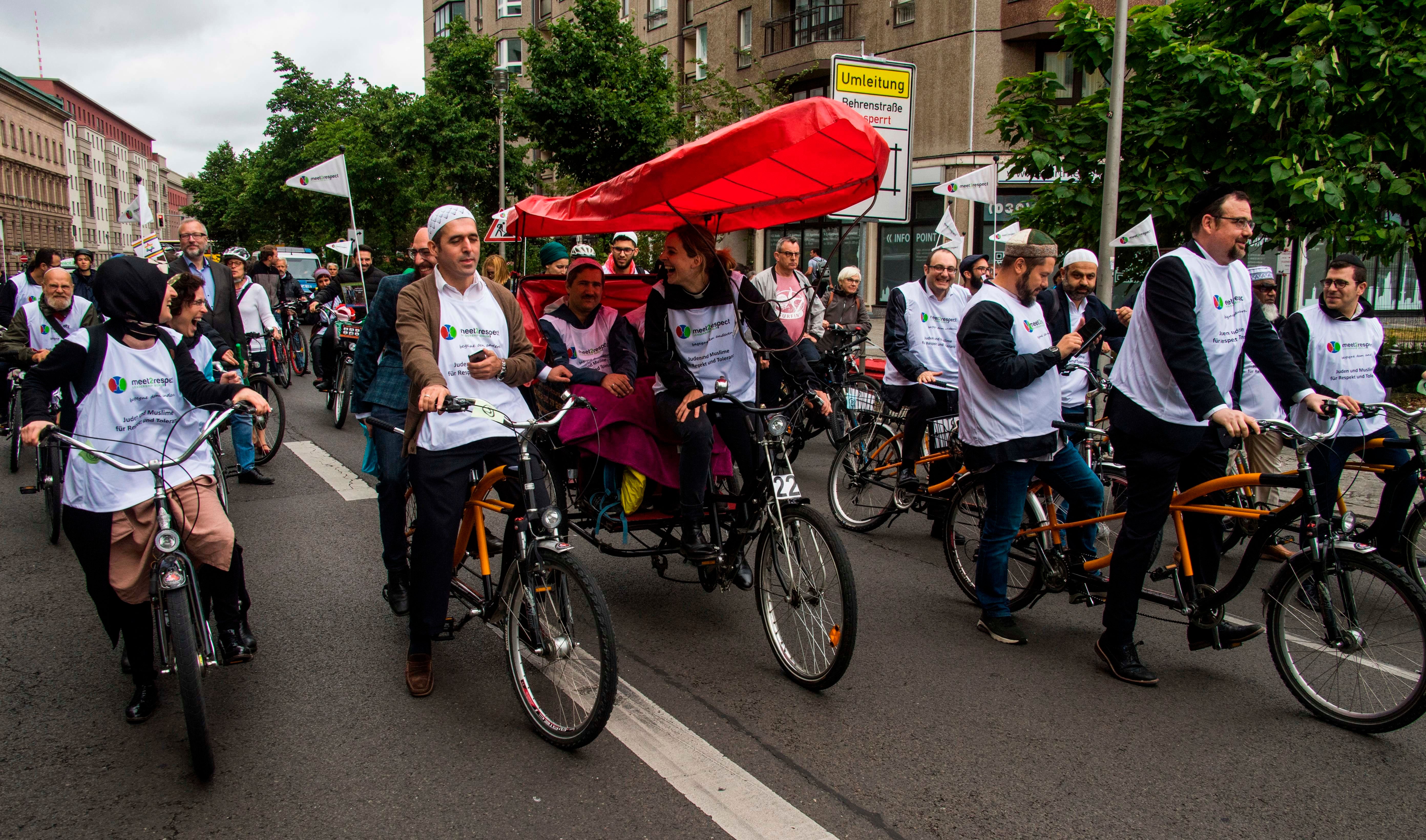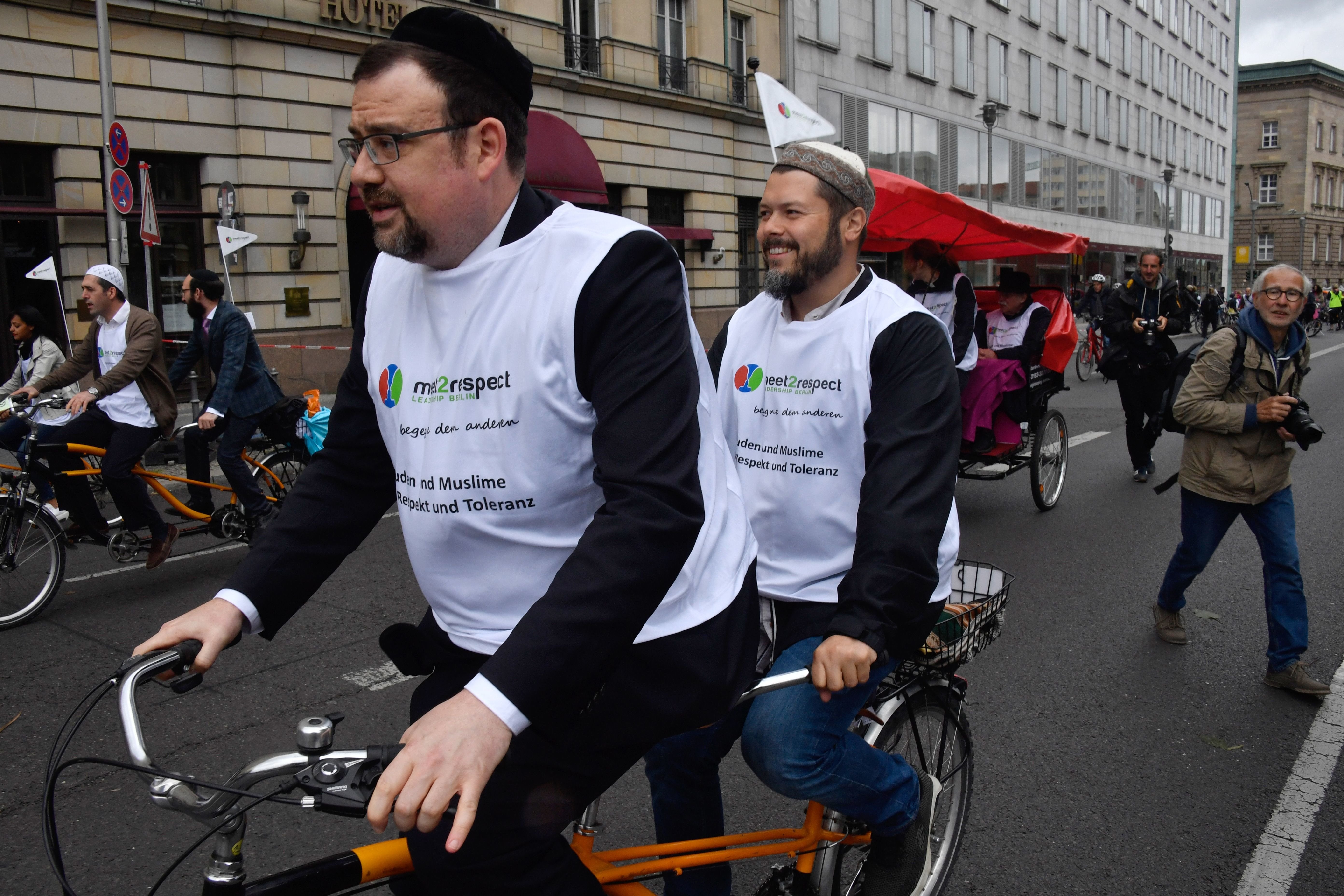 Imams, rabbins, femmes voilées ou de confession juive... Ils étaient en tout, près de 200 à arpenter les rues de Berlin en Allemagne à vélo, en plaidant pour la tolérance, contre l'islamophobie et l'antisémitisme.